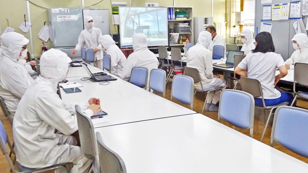 生産現場においては、各課課長を中心に従業員との信頼関係を築き風通しの良い職場を目指し日々努力しています。生産設備整備、生産基準の明確化、従業員の熟練度の向上で異物混入のリスクの低減及び品質保証に取り組んでいます。また品質データー不正対策として帳票のDX化、従業員の法令法規順守教育の実施及び内部監査や外部監査を行い、常に確認をしています。品質クレームやトラブル発生時には原因の究明を行い再発防止に努めております。